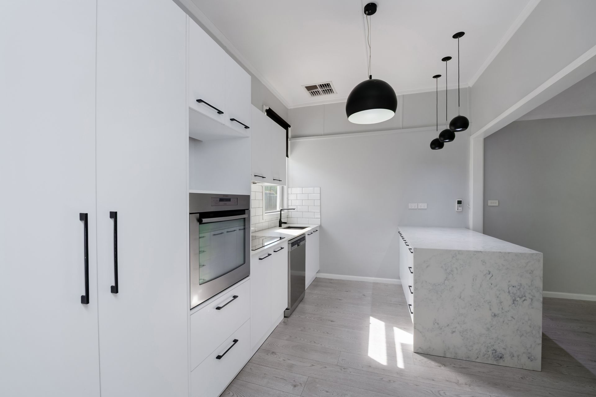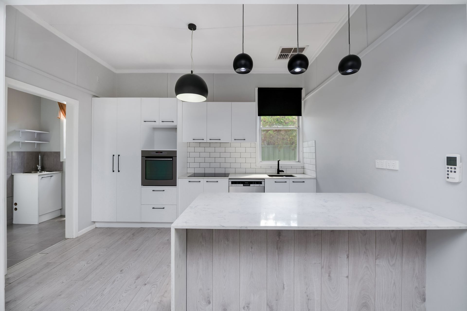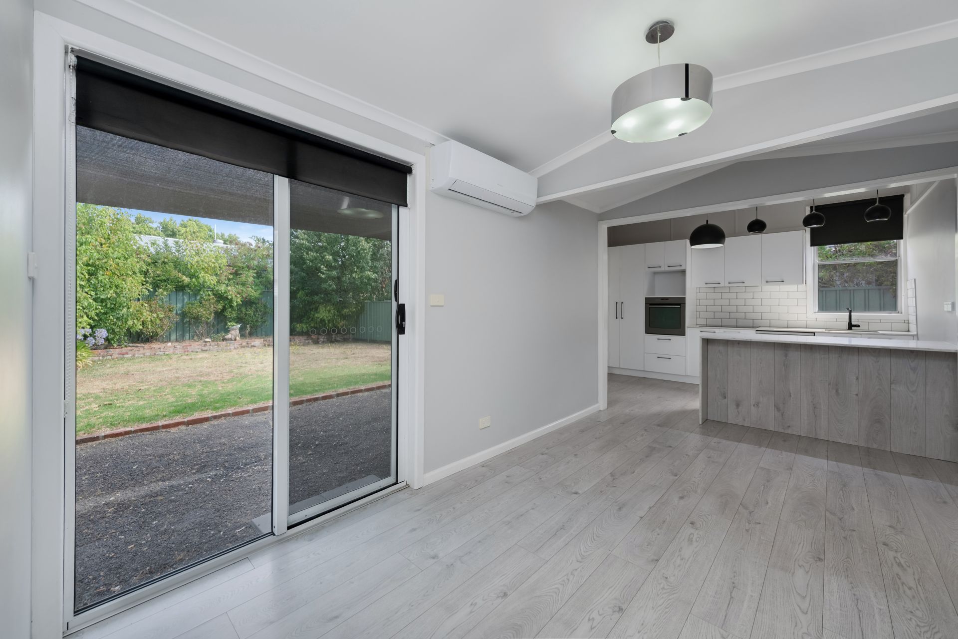 The home features a renovated kitchen with stone benchtops, wall oven and dishwasher, flowing through to a light filled dining area and private outdoor space. Three bedrooms are serviced by a central living area, with split system heating and cooling ensuring year round comfort.
