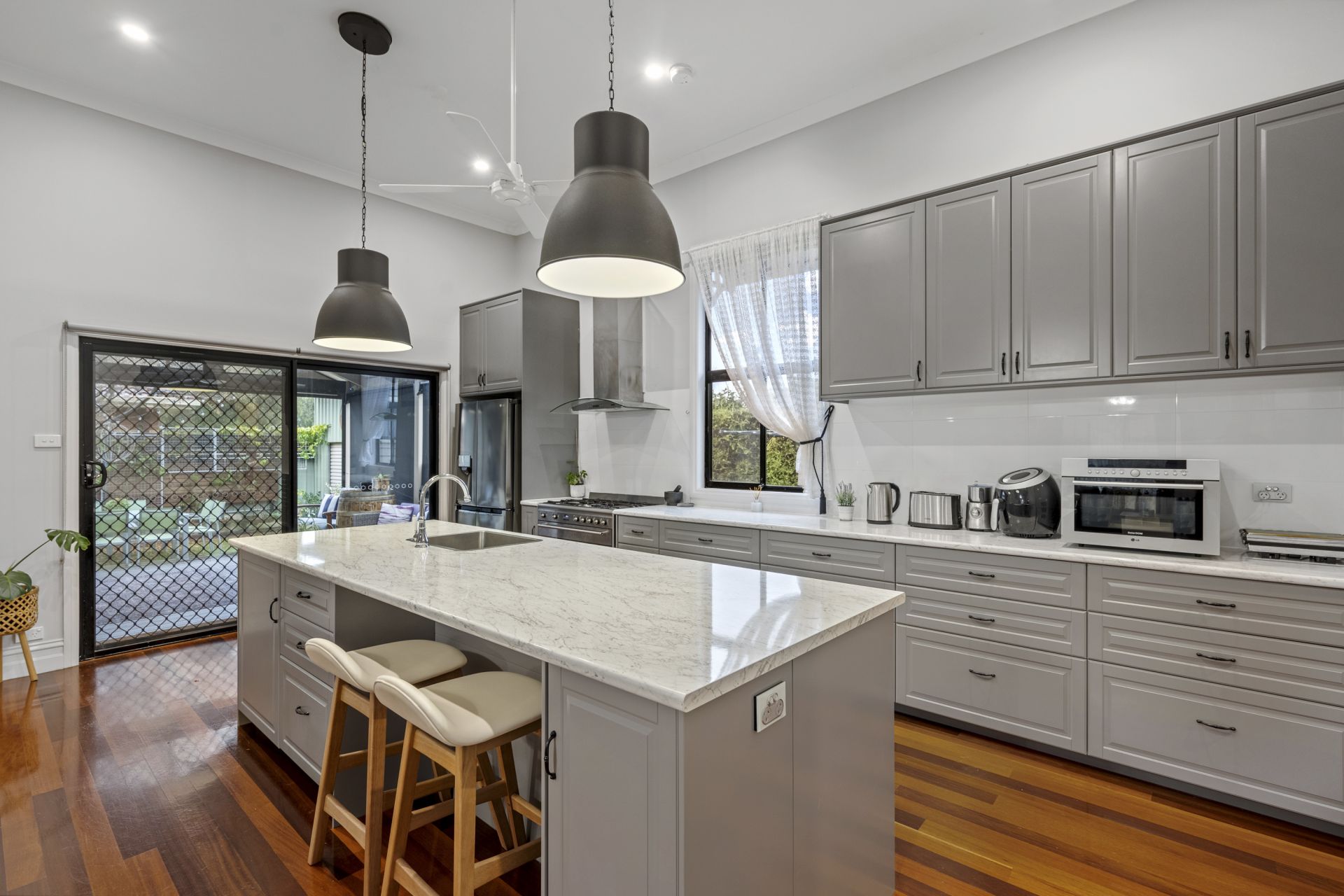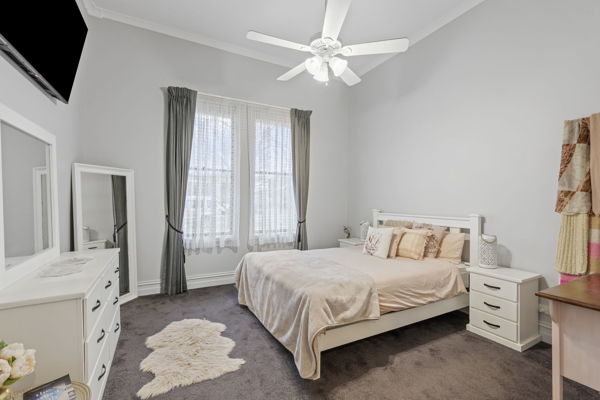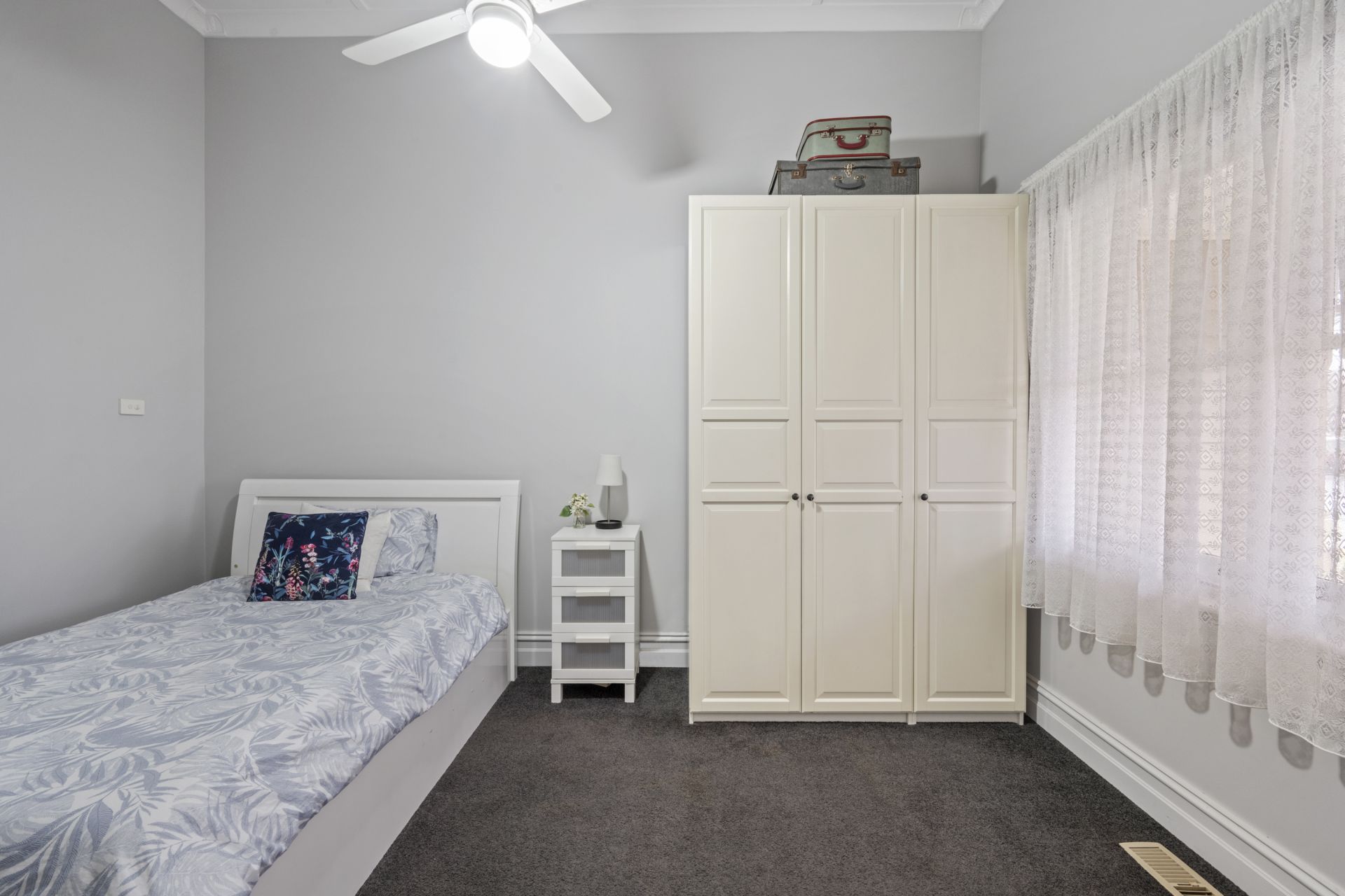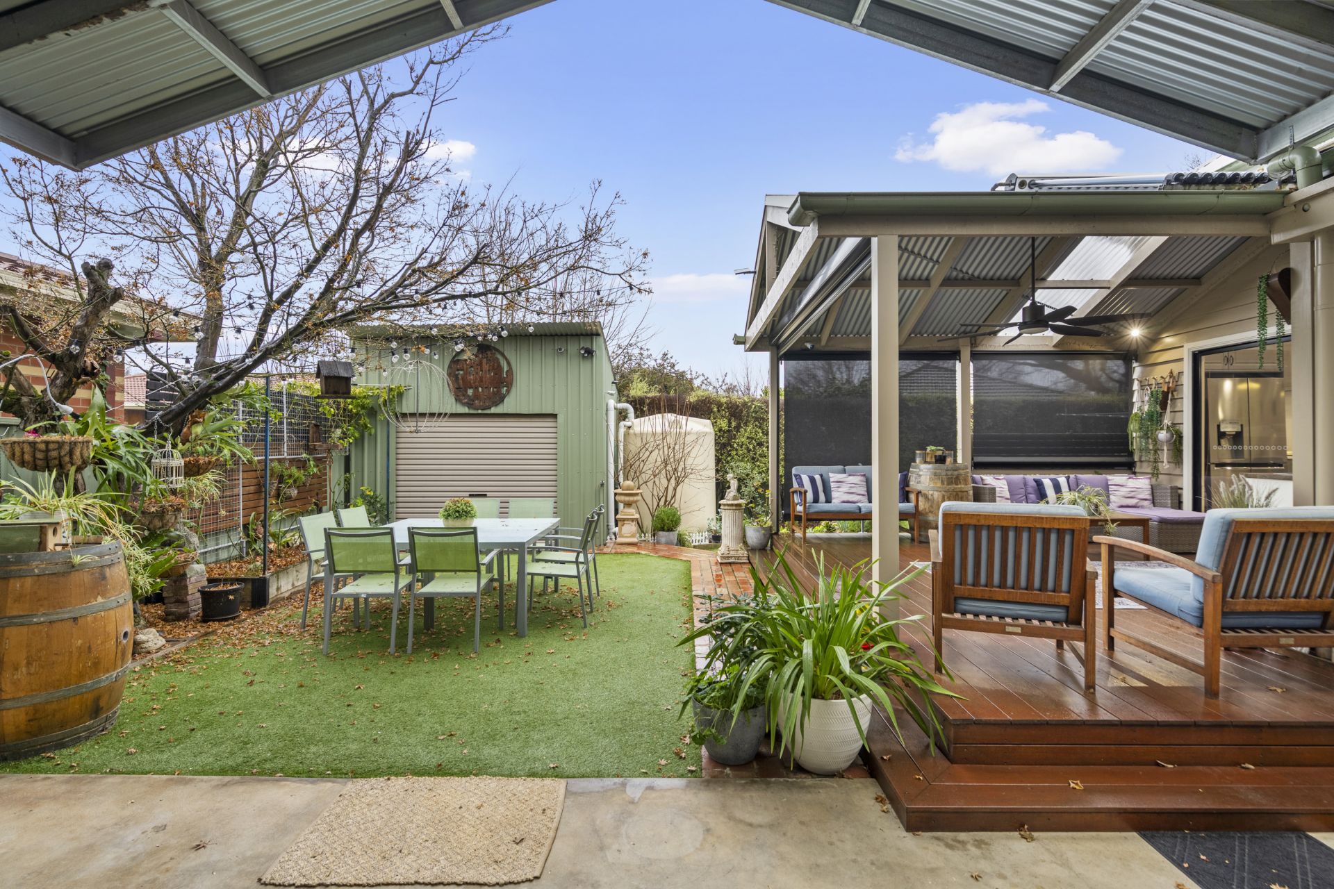 Built in 1904, this character-filled home occupies 519 sqm, and underwent extensive renovation in 2016, offering high-quality inner-city living. Its unbeatable location places it just 550m from Bendigo Hospital and a short drive from Bendigo CBD. The front facade exudes charm, leading into a spacious interior before flowing into the open plan kitchen, living, and dining area-ideal for entertaining. The kitchen features a large island bench, gas cooktop, electric oven, deep built-in pantry, and generous storage. Adjacent to the kitchen is the master suite, complete with a walk-in wardrobe & ensuite, ensuring privacy and comfort. In a separate wing, you'll find the third bedroom, a family bathroom, and separate toilet, along with a galley-style laundry boasting additional storage space. Step outside to the undercover alfresco area, equipped with a kitchen bench, sink, and exterior blinds-a perfect spot for relaxing afternoons. The backyard is designed for easy maintenance, featuring hedging trees that create a private oasis, the double carport with a roller door which can be used a carport or an entertainment area. The property is serviced by mains utilities and includes a 5kW solar energy system, gas solar hot water system, rainwater tank connected to the ensuite and garden tap, and a drip irrigation system for the front garden.