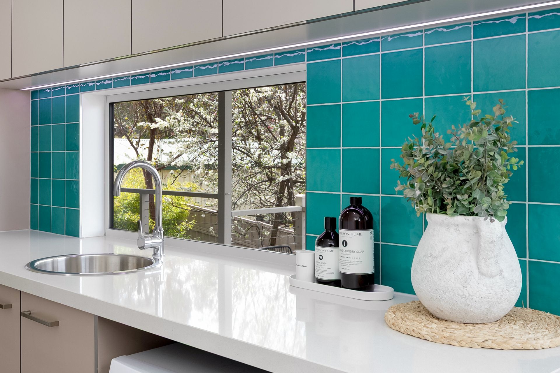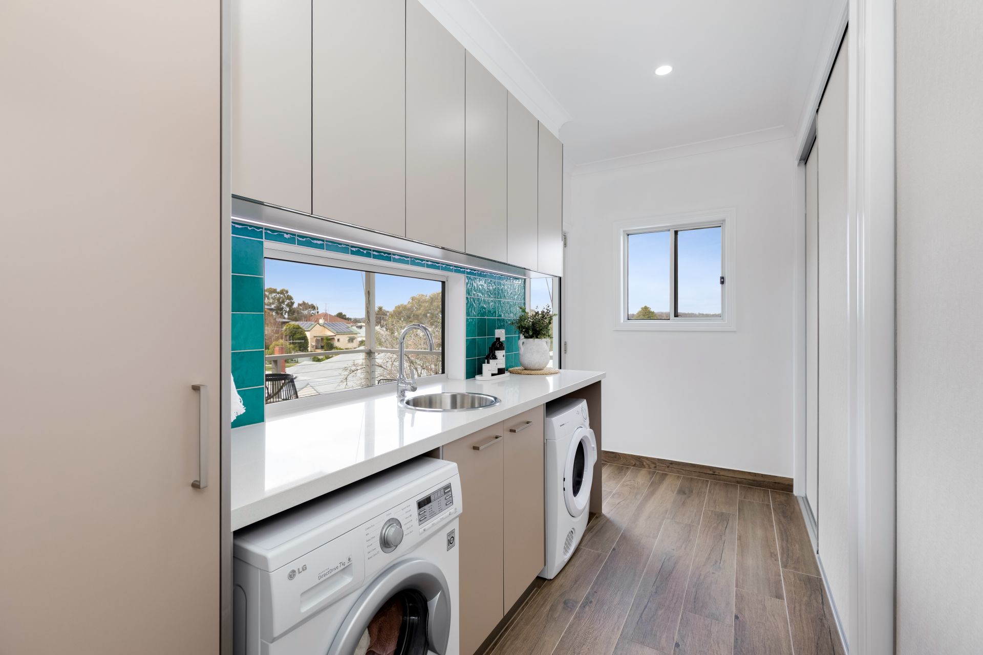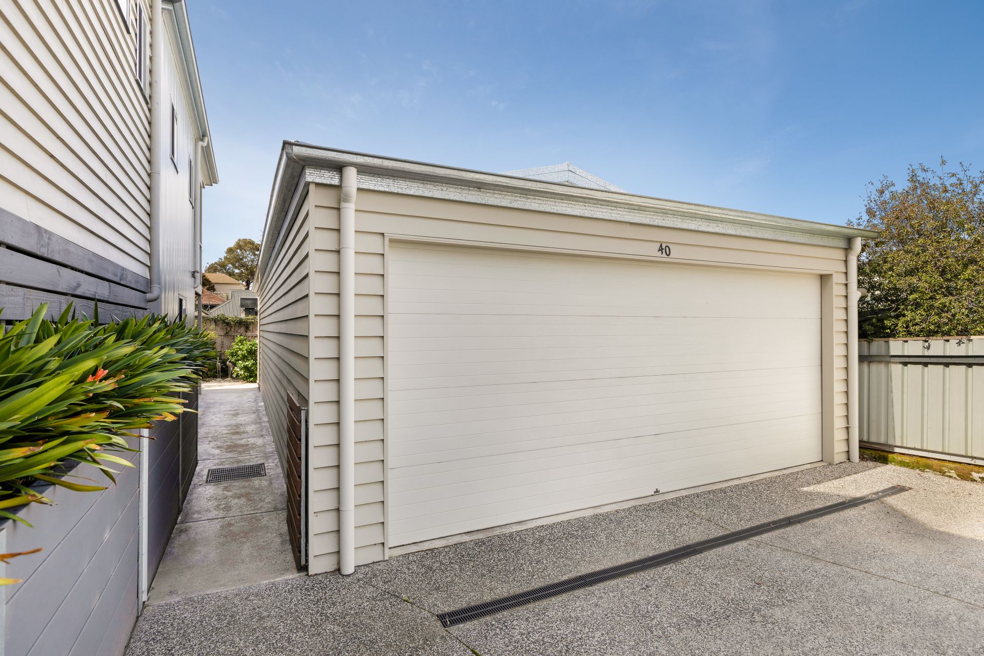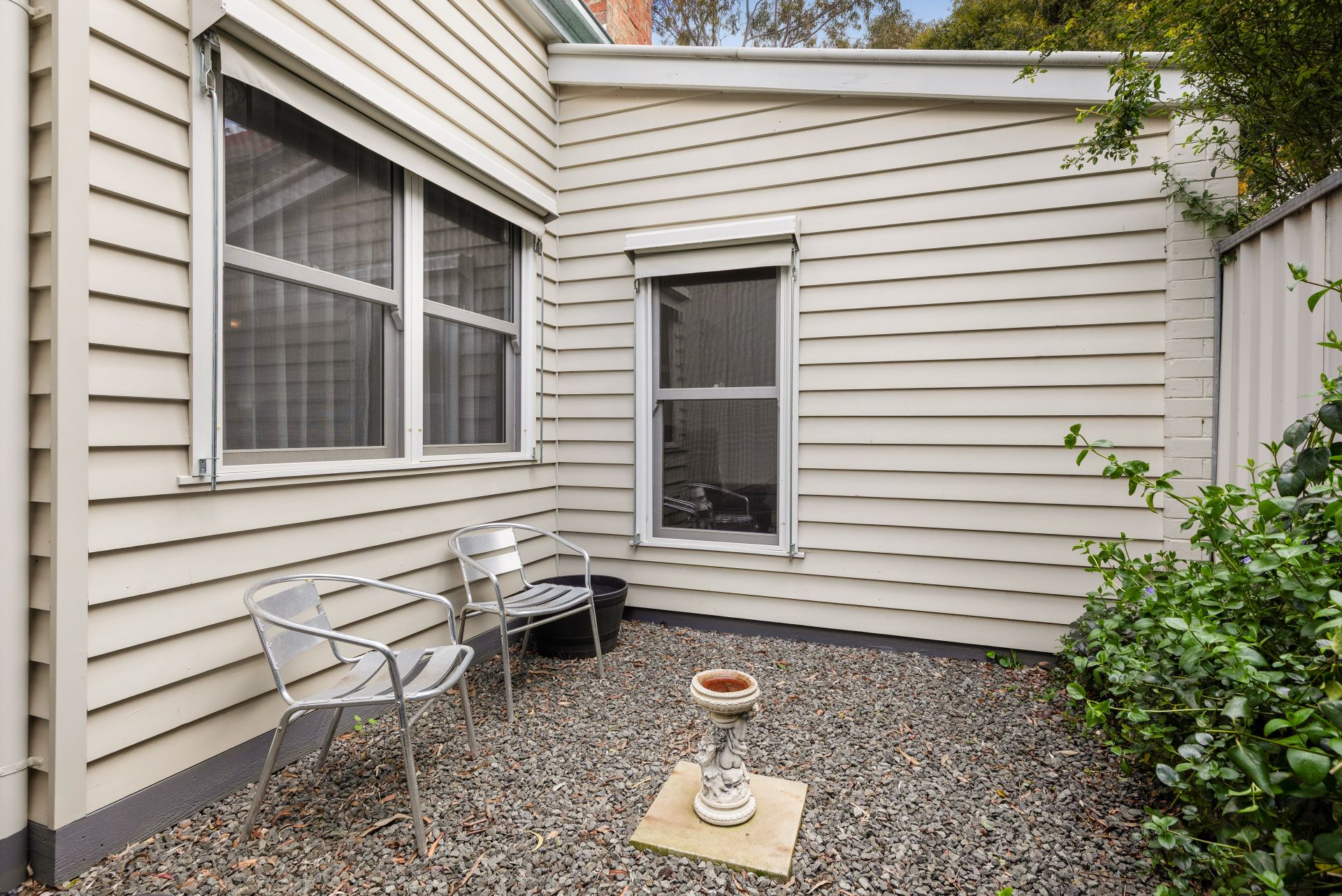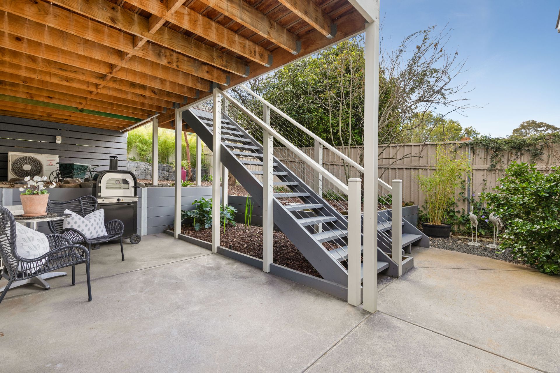 The landscaped gardens are designed for easy maintenance, and the backyard features mature apple and plum trees that provide fresh seasonal fruit.
