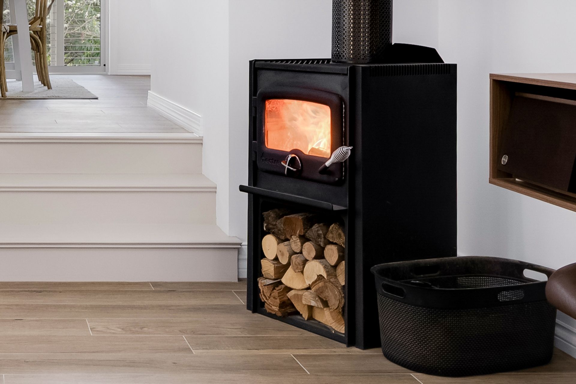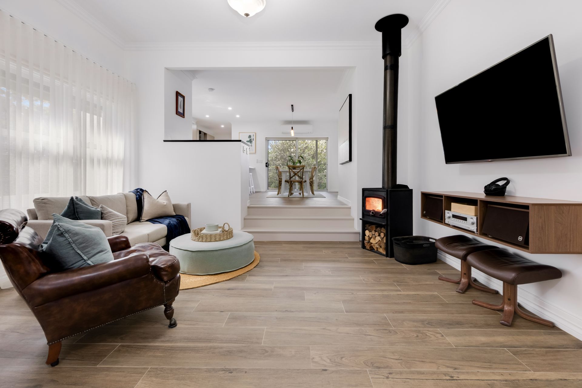 Inside, the home is fully electric and thoughtfully designed for energy efficiency. It features extensive insulation, double-glazed windows and doors throughout, and wiring ready for future solar installation. The Sanden heat pump hot water system and a large inverter split system ensure year-round comfort with impressively low running costs, while a Nectre wood heater adds ambiance and warmth during the winter months.