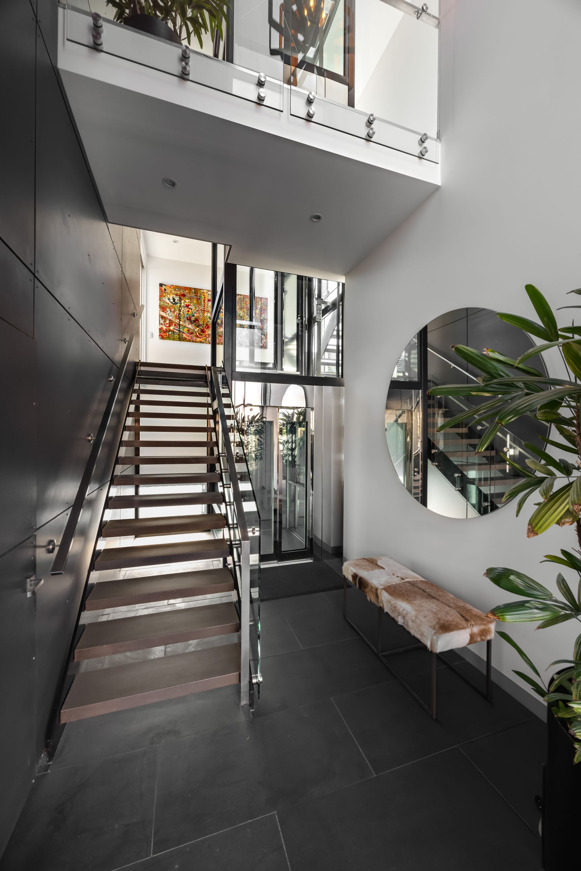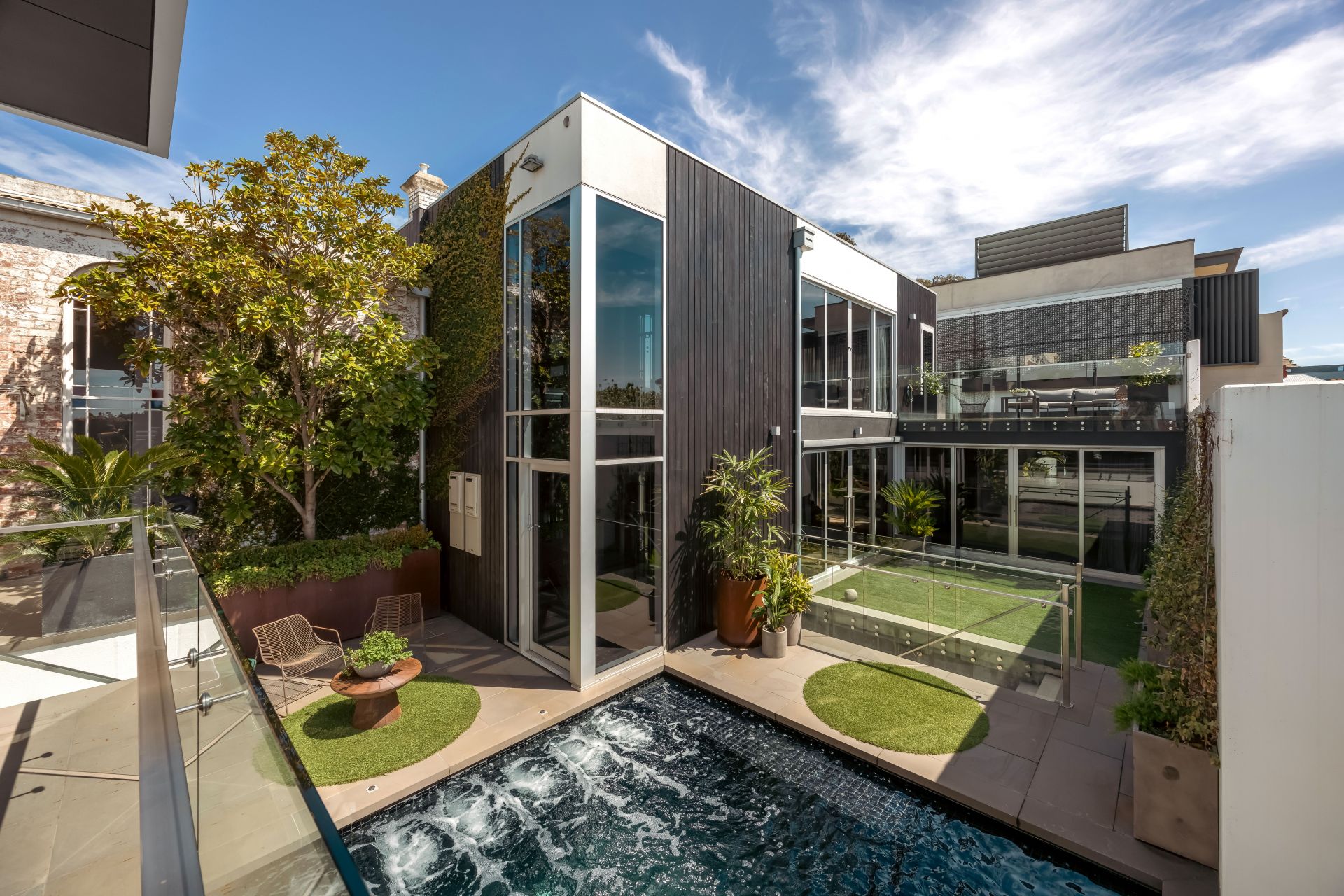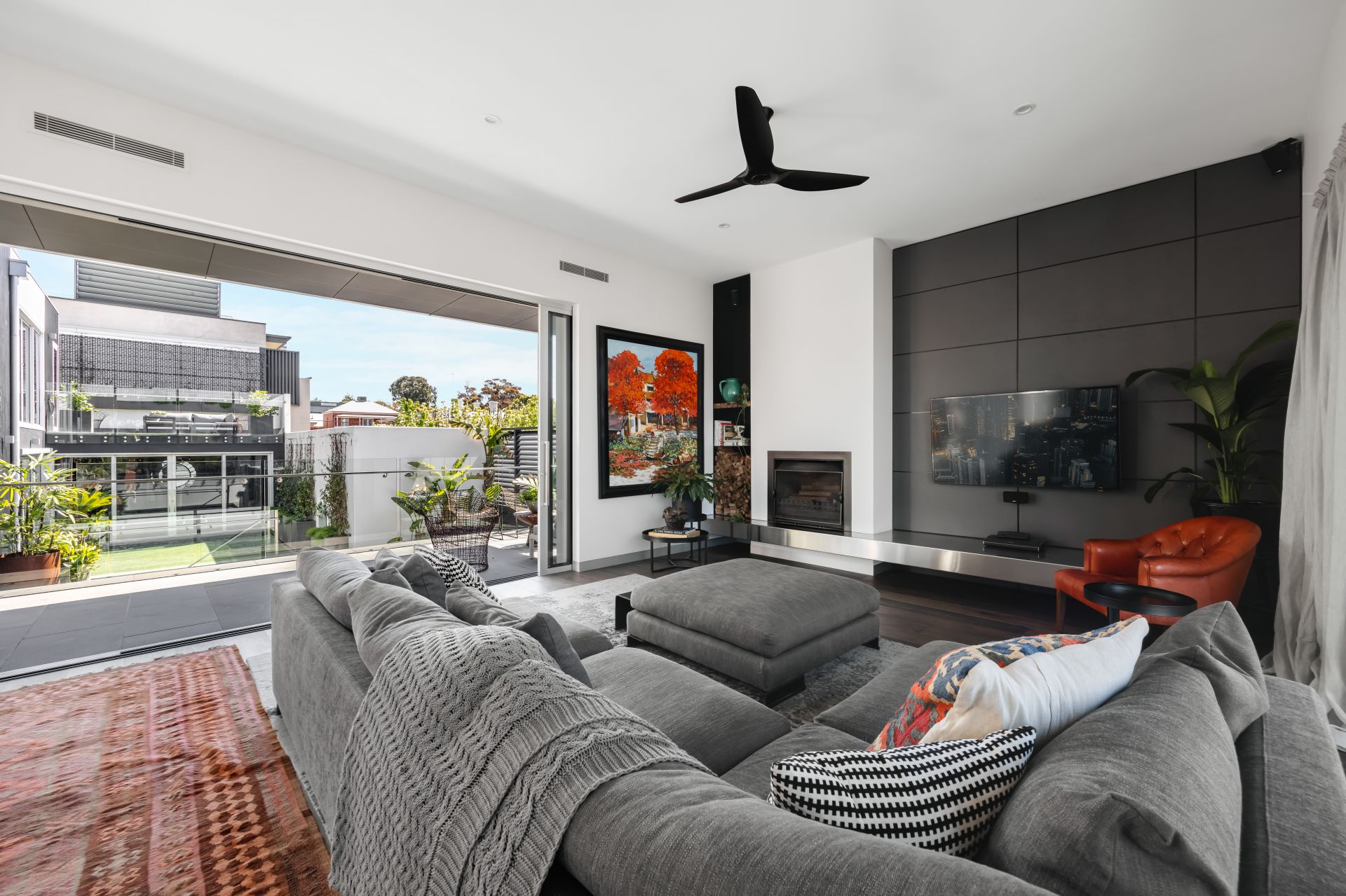 The ground floor includes garaging for up to seven vehicles and a high-profile commercial tenancy ideal for a café, creative studio, or medical suite. Upstairs, family-friendly zones flow across multiple levels, featuring four generous bedrooms, light filled living spaces, study and a chef's kitchen that opens to a tranquil courtyard oasis. The top floor is dedicated to a master retreat, complete with lounge, luxurious ensuite, his-and-her dressing rooms, and sun terrace.