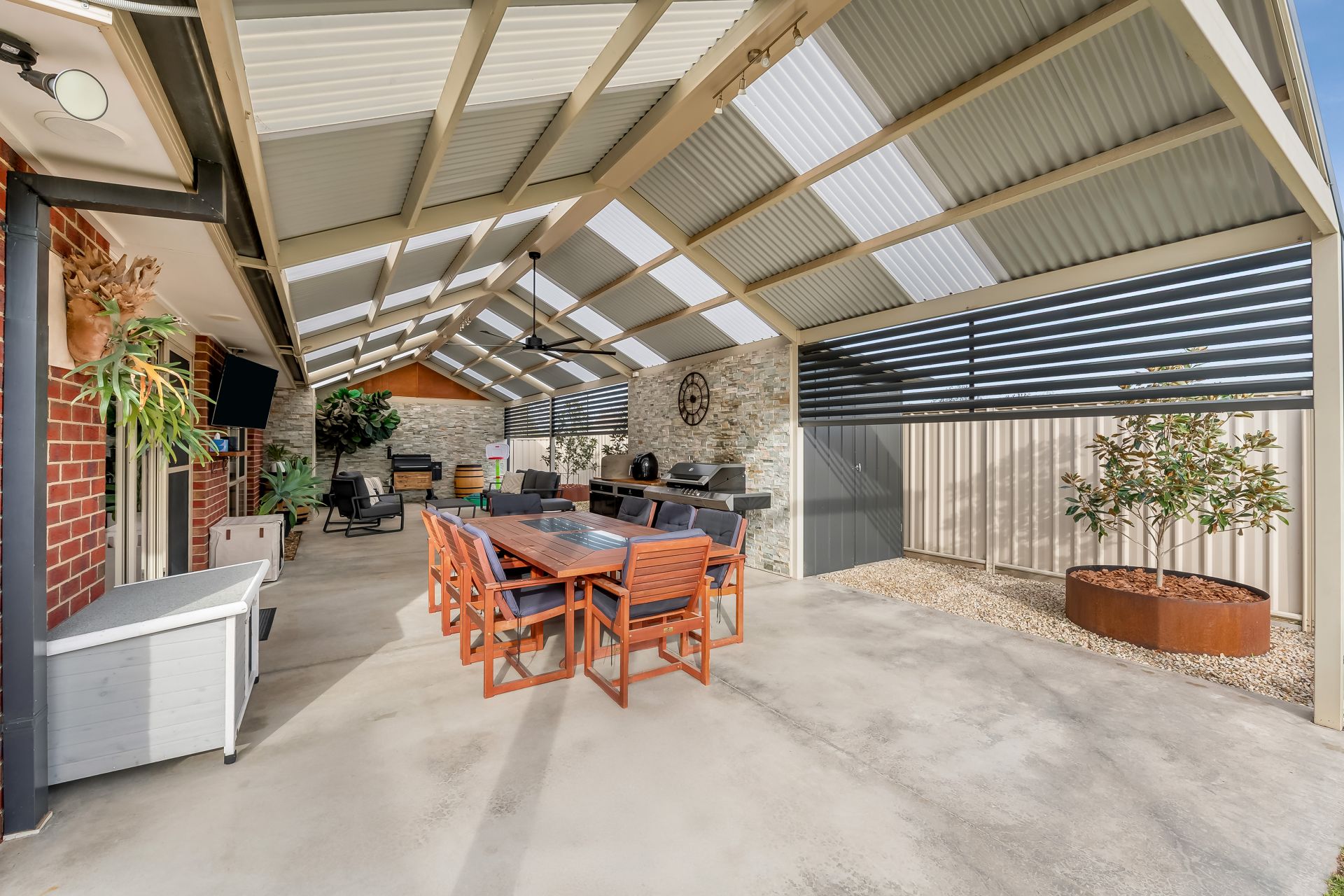 Step outside to discover the real showstopper-a massive undercover entertaining area, complete with stack stone feature walls, ceiling fan and space for a full BBQ kitchen. Whether it's summer gatherings or winter nights, this space caters to all seasons.