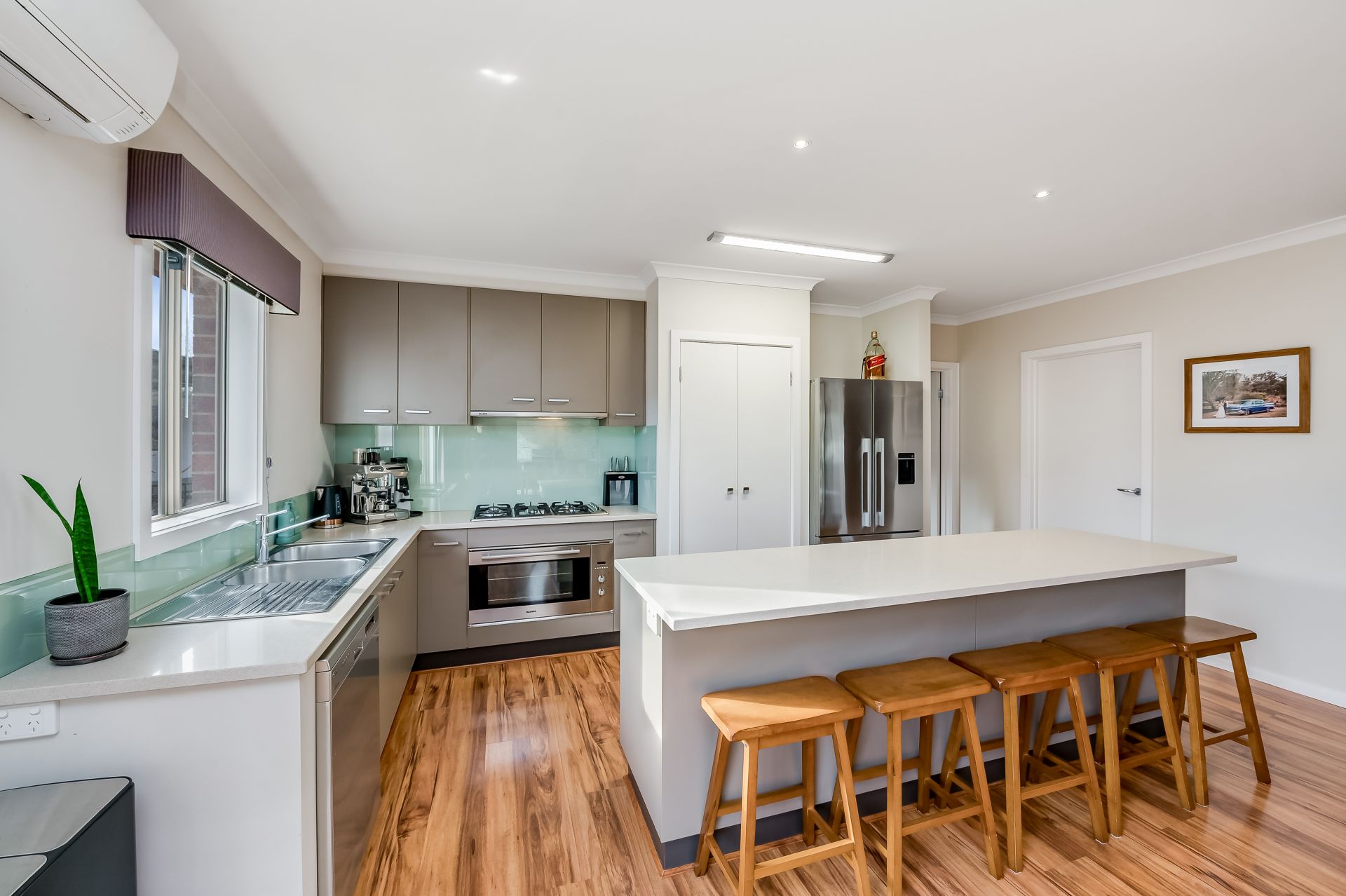 A formal separate living zone adds versatility to the floorplan and provides a great space for relaxing or entertaining. The heart of the home is the open-plan kitchen, dining, and living area, flooded with natural light and designed for both everyday living and entertaining. The kitchen is fitted with quality stainless steel appliances, stone bench tops, a dishwasher, and an upgraded 900mm oven and cooktop-perfect for the home chef. Glass sliding doors open from the dining space to the impressive backyard.