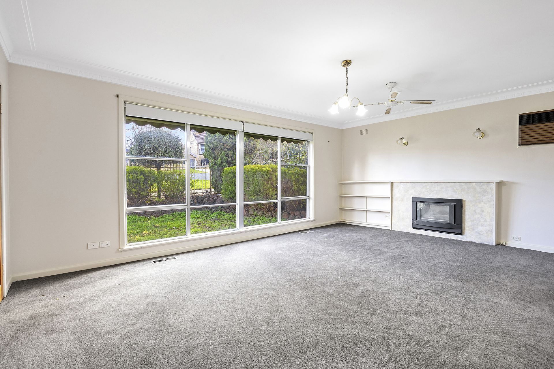 The striking façade and mature front garden provide strong street appeal, while the elevated rear deck captures sweeping views of the Bendigo skyline-ideal for relaxing or entertaining. Inside, the inviting front porch flows into a spacious loungeroom. Here, comfort reigns with a gas log fireplace, refrigerated air conditioning, and ceiling fan, creating a cosy space to unwind year-round.