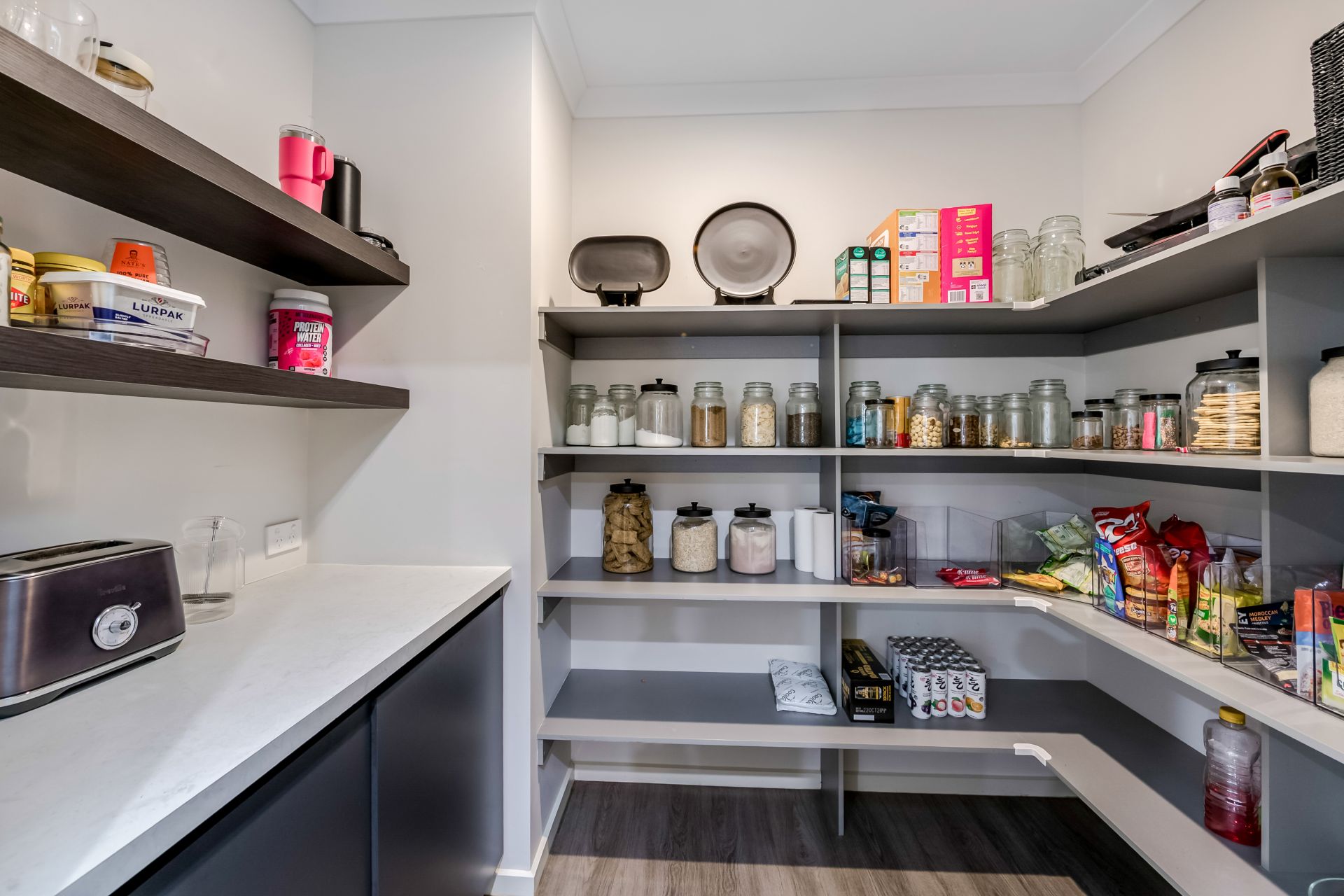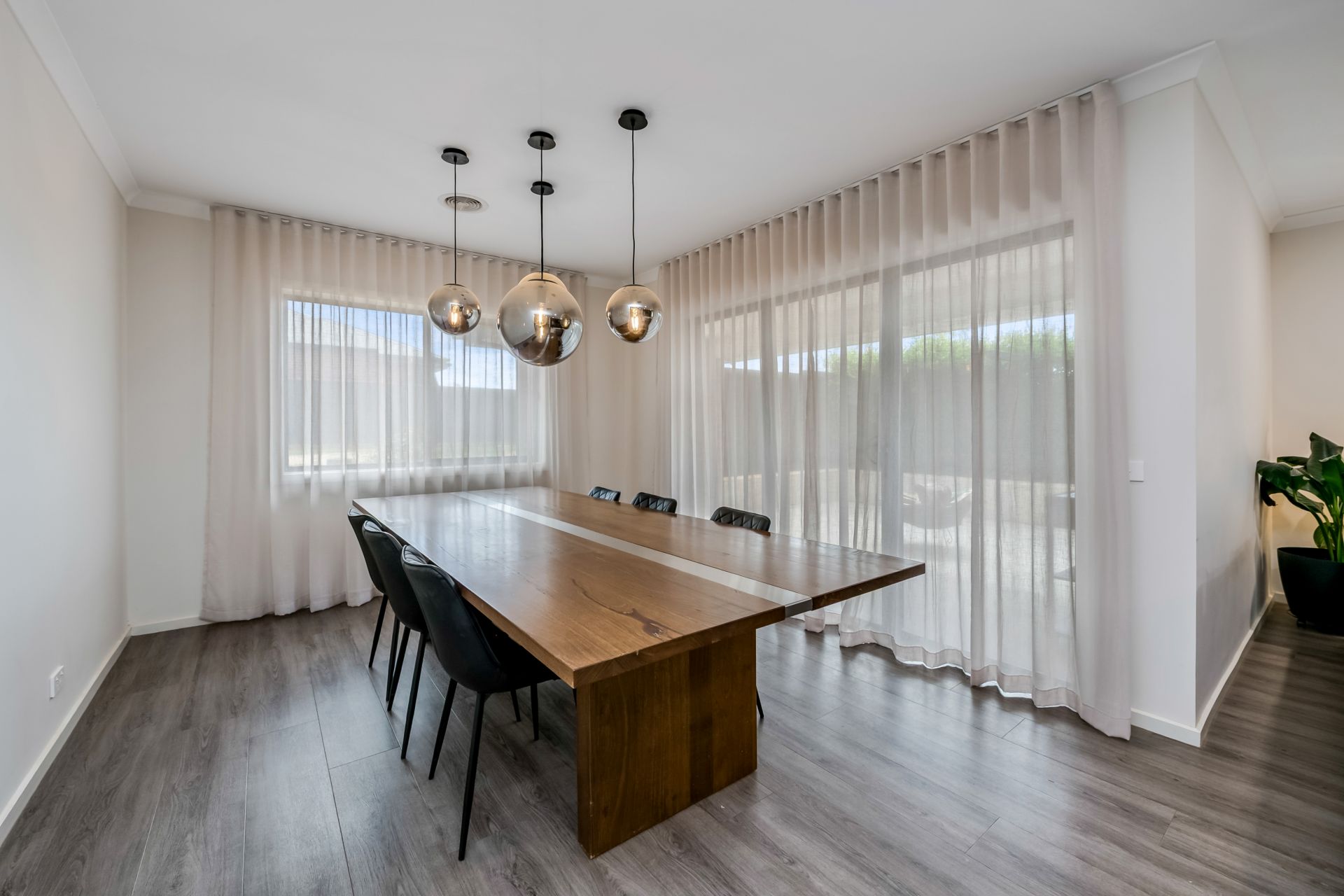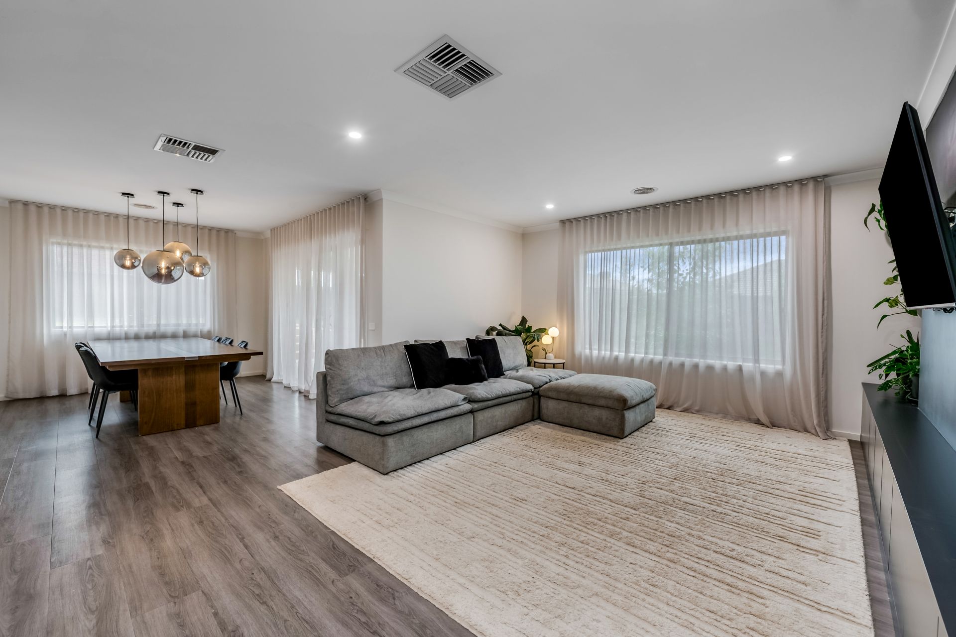 The heart of the home is the light-filled open-plan kitchen, meals, and living area—designed for effortless everyday living and entertaining. The contemporary kitchen showcases stone benchtops, a built-in oven, induction cooktop, and a generous walk-in pantry. A stylish built-in bar adds a touch of sophistication and makes hosting family and friends a breeze.
