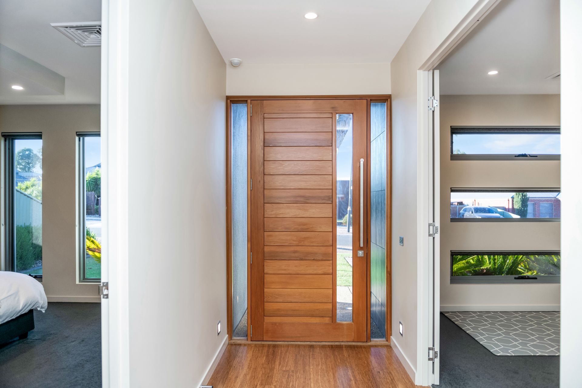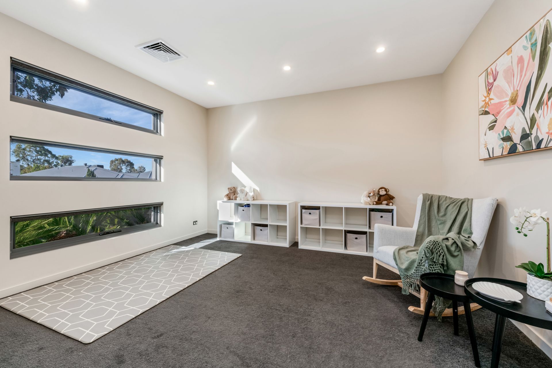 Three more generously sized bedrooms feature built-in robes and enjoy proximity to the well-appointed bathroom and a powder room. The walk-through laundry includes a linen hamper, benches and a wall of cupboards.
