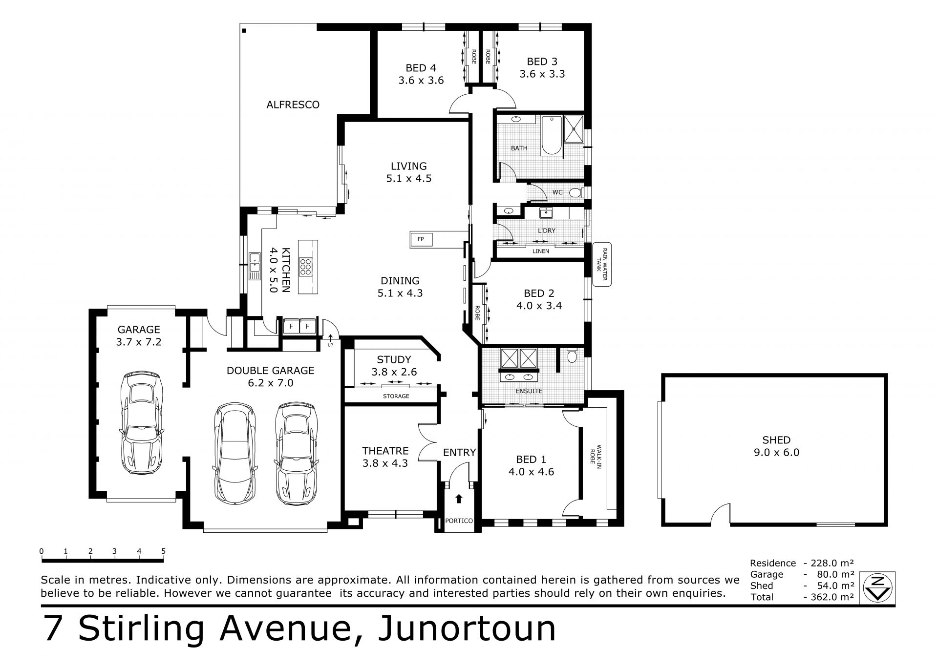 Additional features include ducted heating and refrigerated cooling, a security system, a cost-saving 1.5Kw solar power system, remote-controlled three-car garaging with internal access, a storage area, and rear roller door access to the backyard for trailer parking.