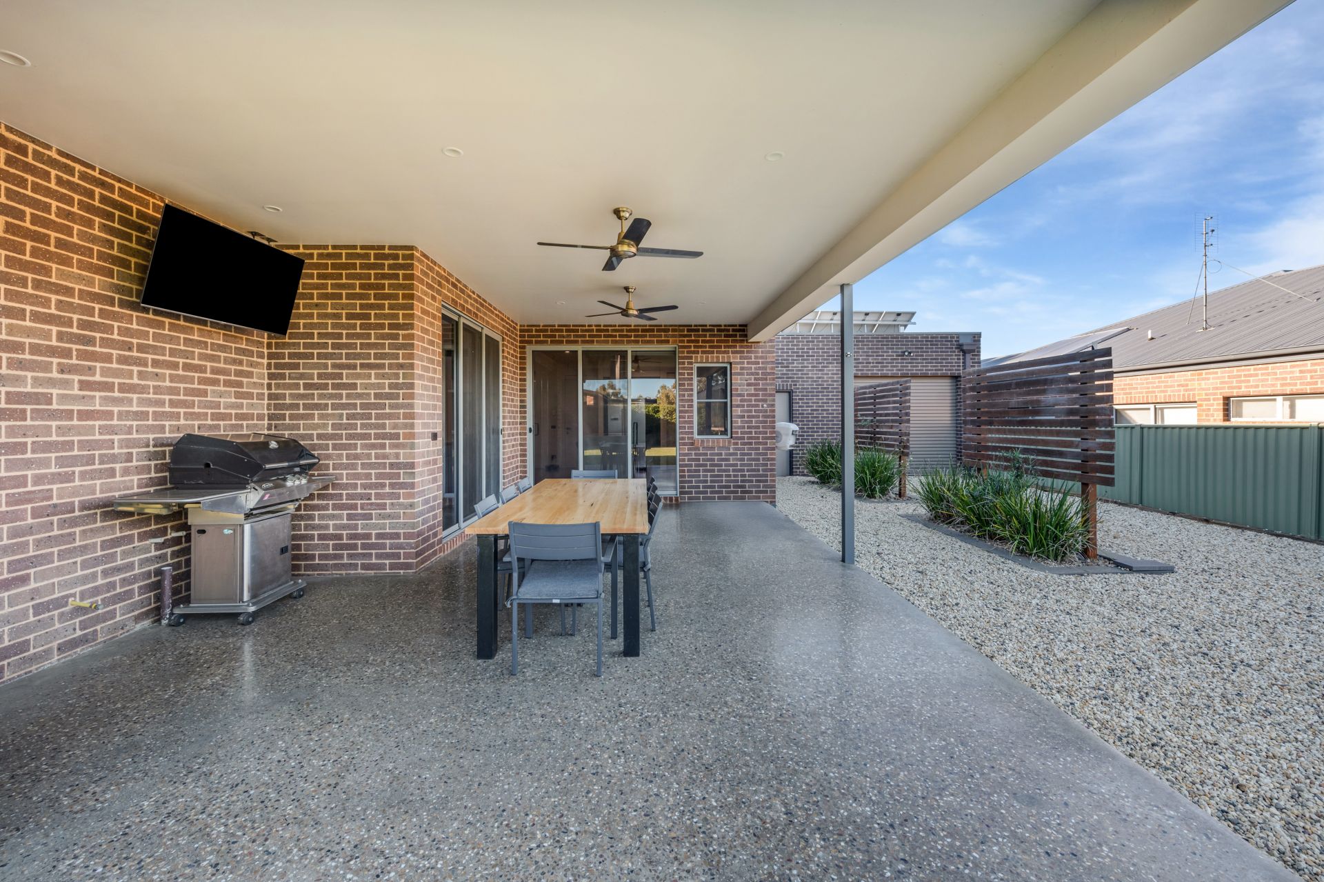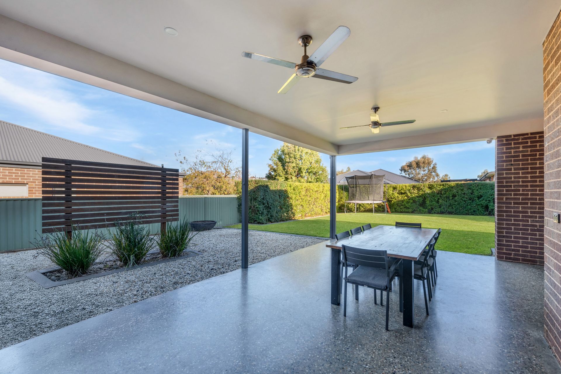 Seamless connectivity to the covered alfresco with a polished concrete base and ceiling fans provides the ideal outdoor environment for family gatherings.