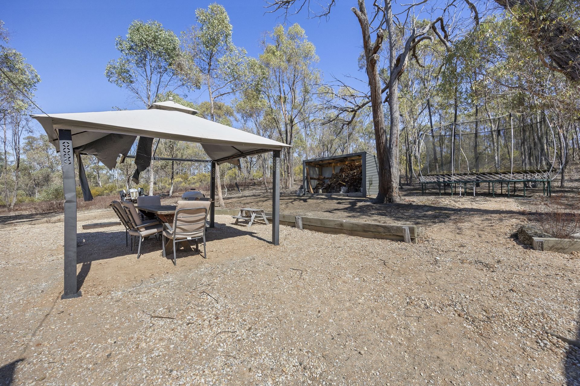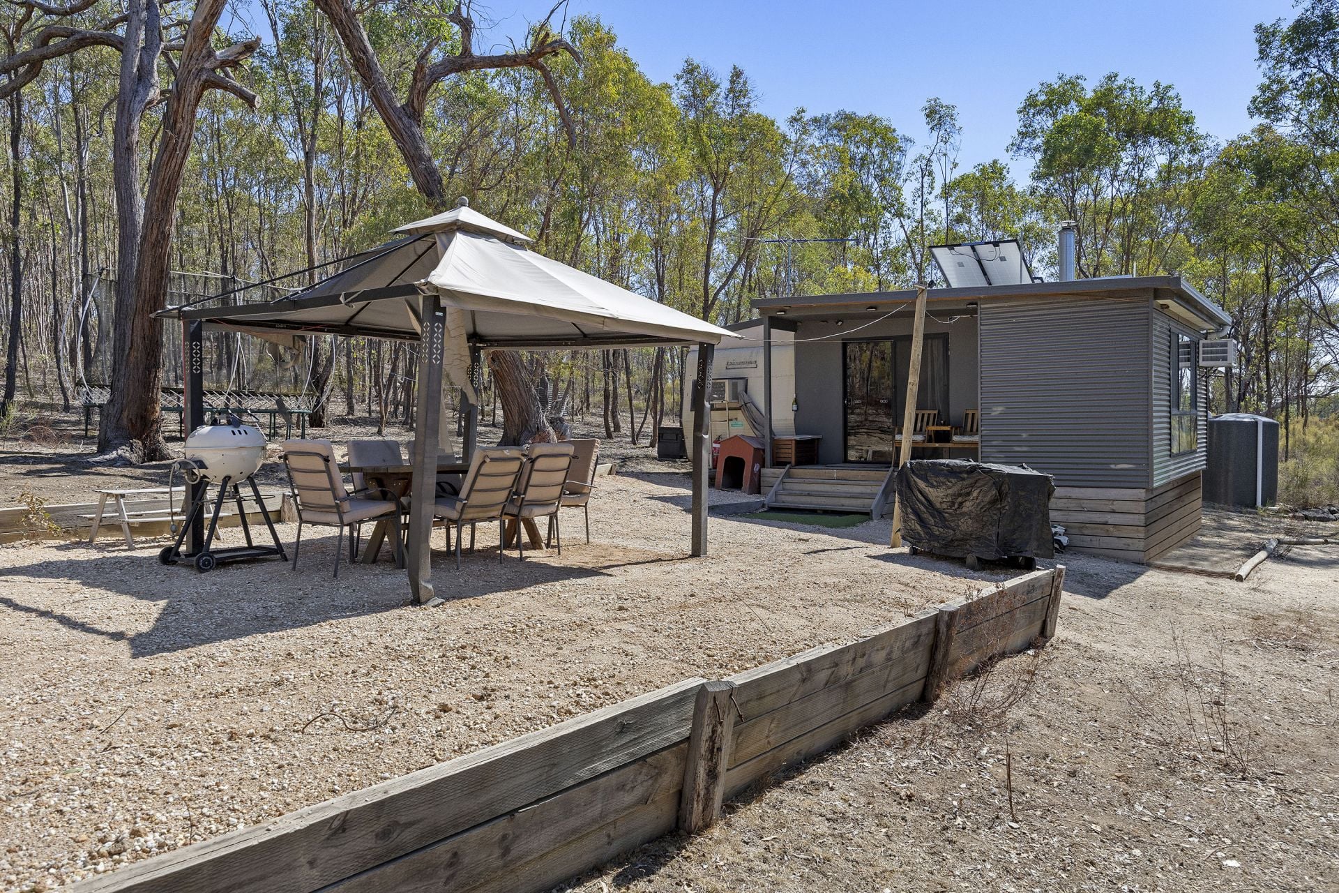 The property features a comfortable caravan with a built-on unit, providing a cozy living space for weekends away. With solar power, water tanks, and an outdoor toilet, this setup offers the independence of off-grid living without compromising on comfort. The outdoor dining area provides an ideal spot for enjoying meals surrounded by nature, while the shed offers additional storage space for tools, equipment, or hobbies.