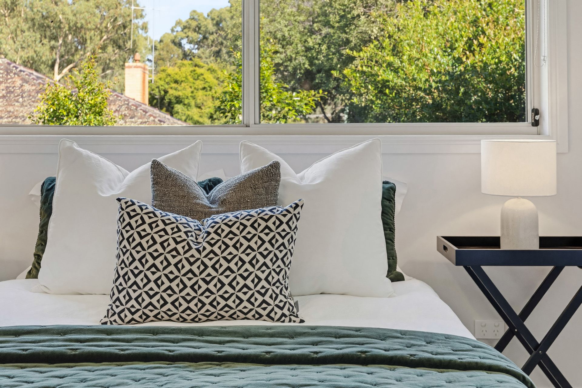 Large windows bring in natural light, enhancing the sense of space and warmth. The contemporary kitchen features a generous island bench, excellent storage and quality Bosch stainless steel appliances including a wall oven, gas cooktop and dishwasher.