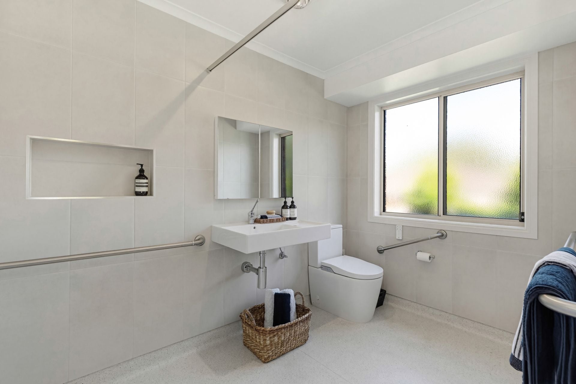 A key feature of the home is the newly renovated accessible ensuite, thoughtfully designed for comfort and independence. It includes a wide sliding doorway, roll-in shower with grab rails and handheld shower, seat-height vanity with lever mixer tap, recessed mirror cabinet, bidet toilet and non-slip hospital-grade vinyl flooring.