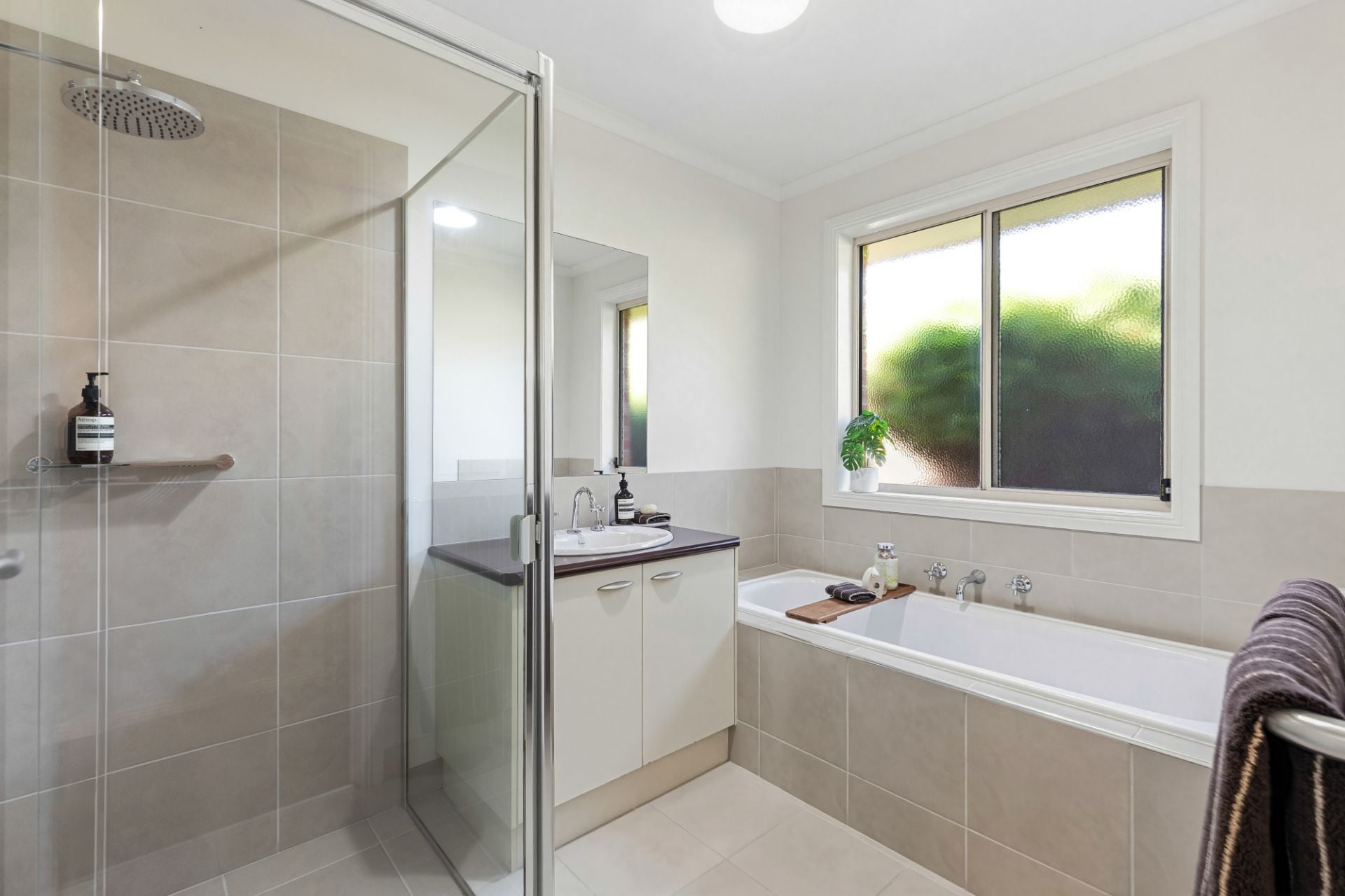 The main bedroom offers a private retreat complete with walk-in robe, ensuite and sliding door access to the backyard. Three additional bedrooms provide flexibility for growing families, guests, home office use or hobbies. The central bathroom includes a bath, shower and vanity, with a separate toilet for convenience.
