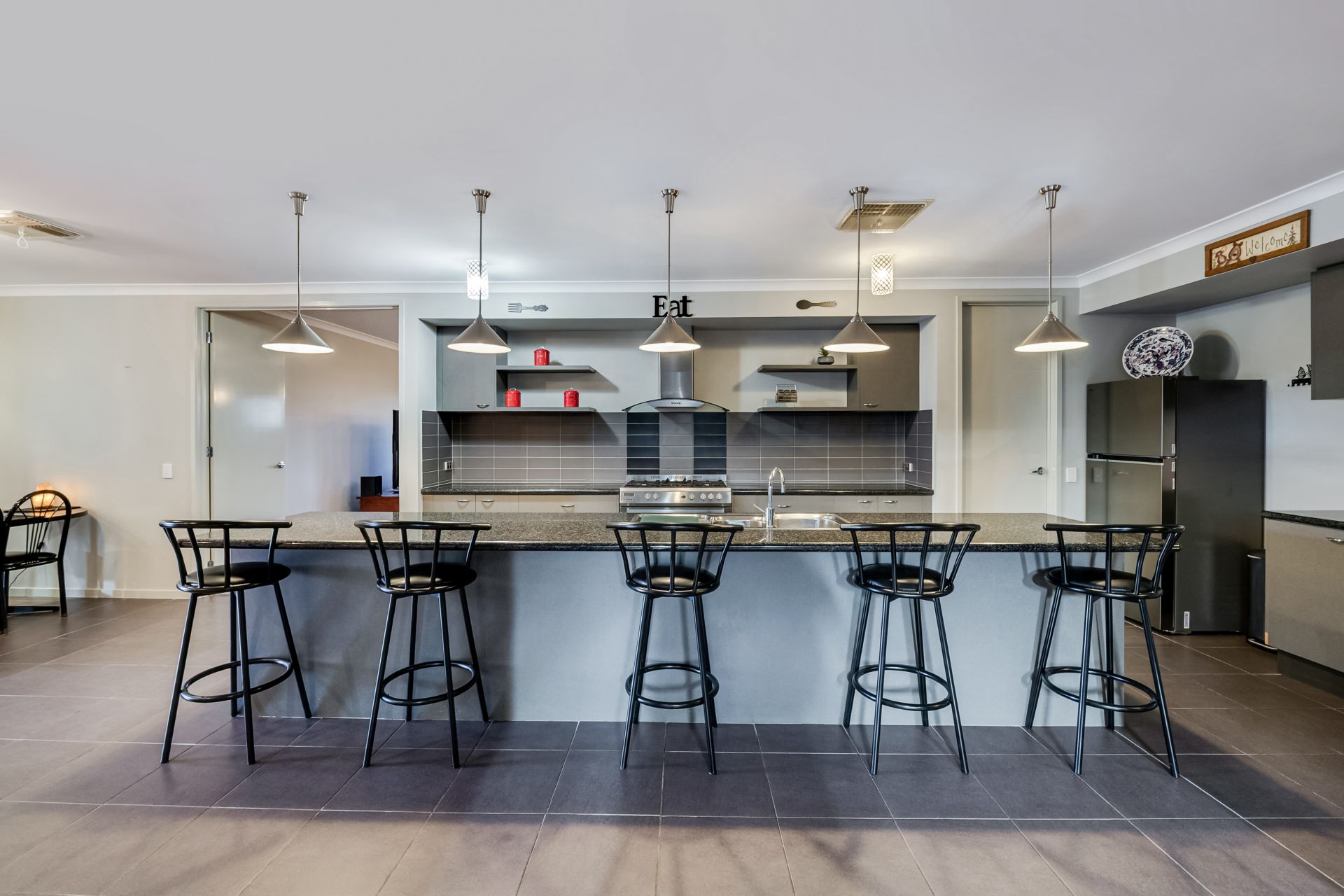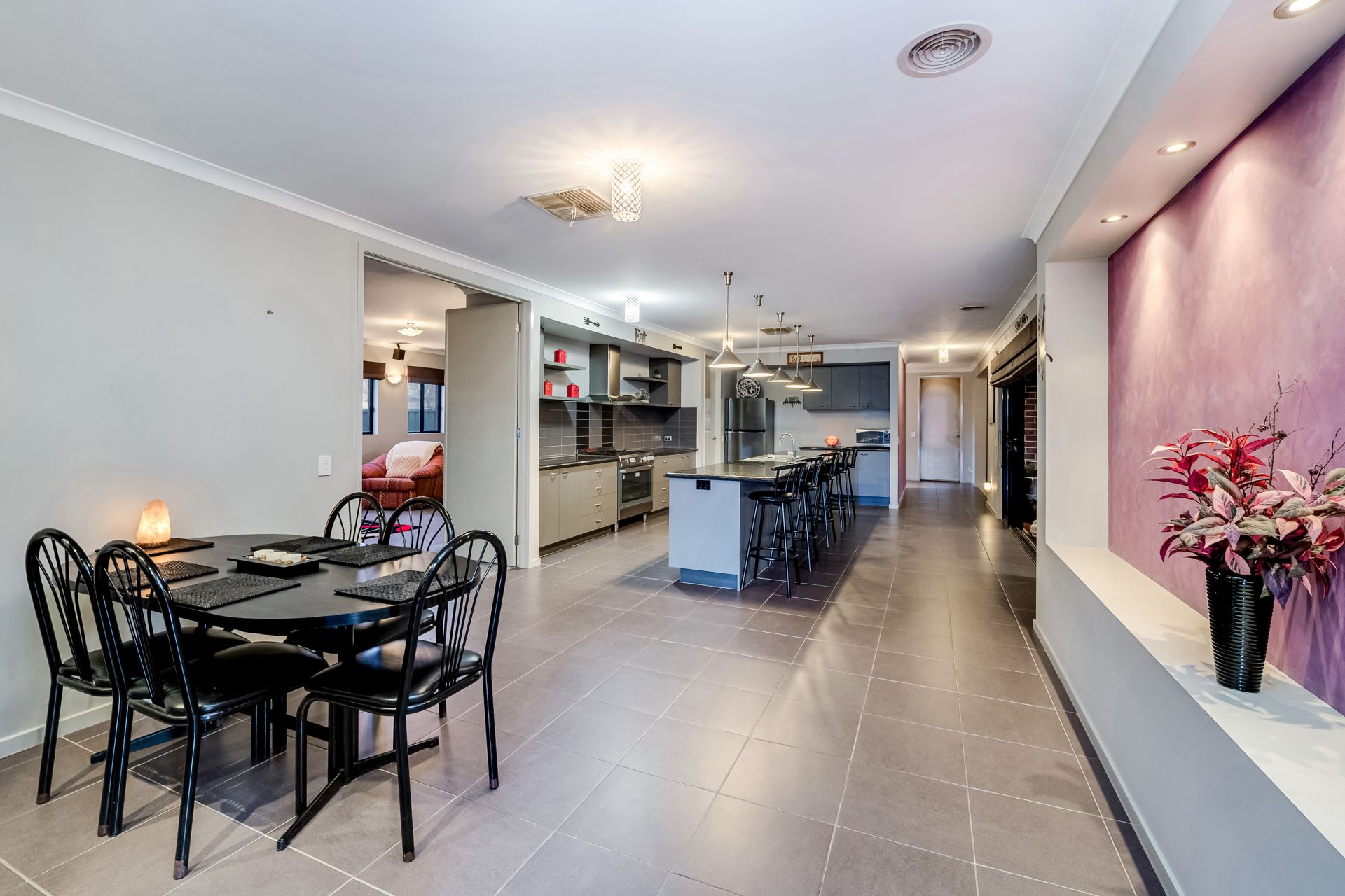 The heart of the home is a beautifully appointed kitchen featuring a large marble benchtop, walk-in pantry, 900mm oven and dishwasher, all overlooking a spacious decked and covered outdoor entertaining area-perfect for year-round gatherings.